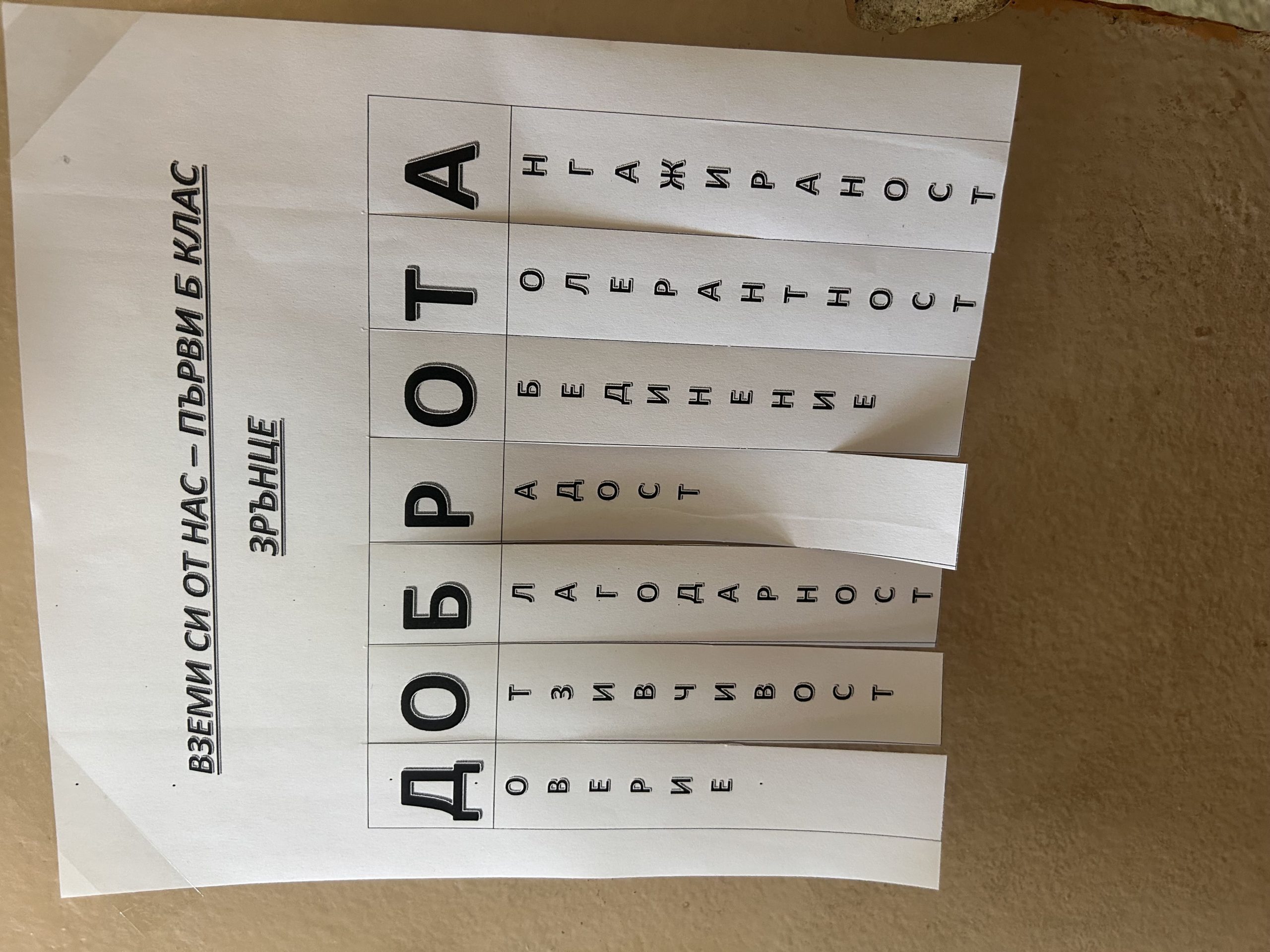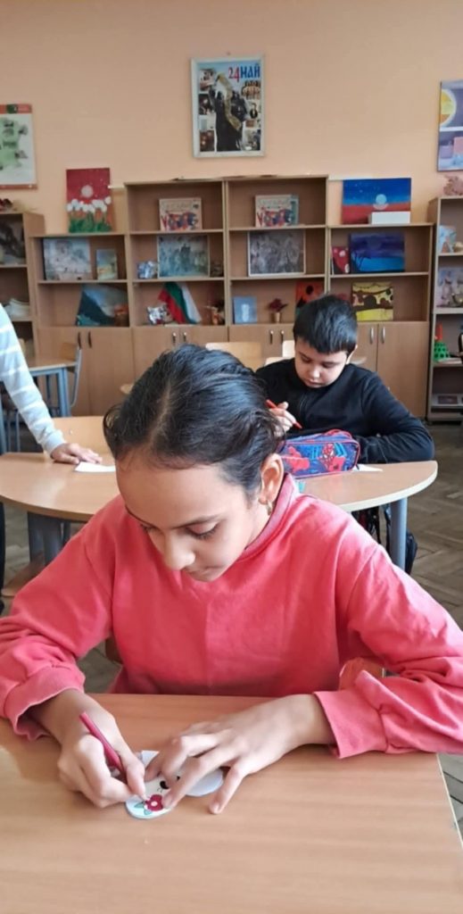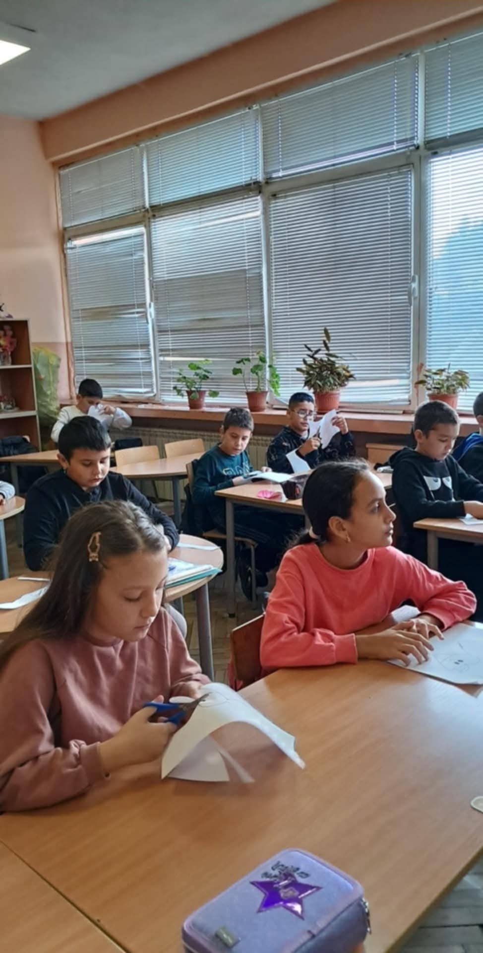 Нашите четвъртокласници с много ентусиазъм и старание представиха своя урок по родолюбие пред малчуганите от 1.б клас, които слушаха с интерес и възхищение. 💫 В края на срещата, с помощта на по-големите си приятели, първокласниците изработиха мини книжки, посветени на народните будители — символ на знанието и вдъхновението, което те ни завещават. ✂️📚