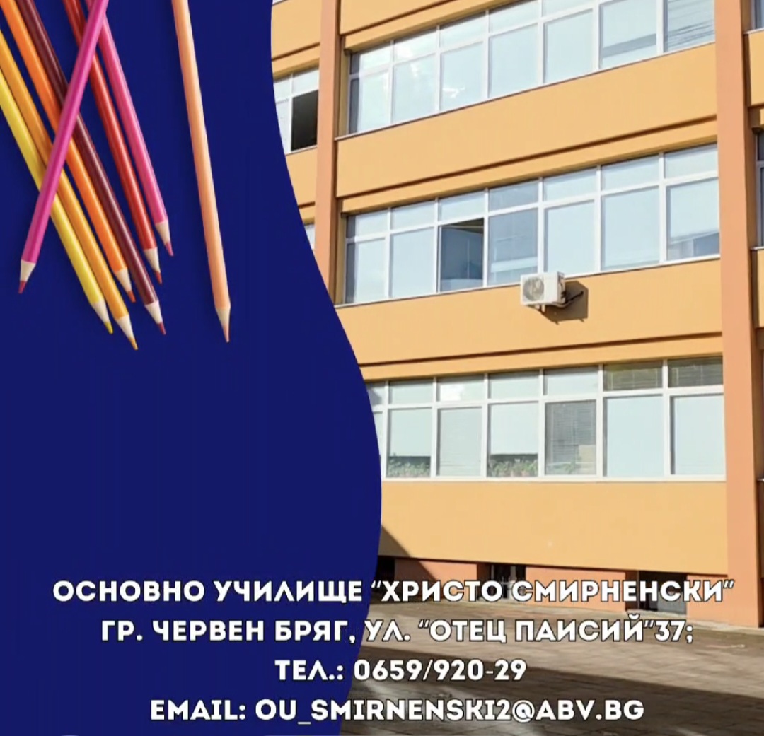Със Заповед на началника на РУО-Плевен Основно училище „Христо Смирненски“, град Червен бряг е определено за училище-център, в което ще се подават документи за участие в първи и в трети етап на класиране за прием в VIII клас за учебната 2022/2023 година.