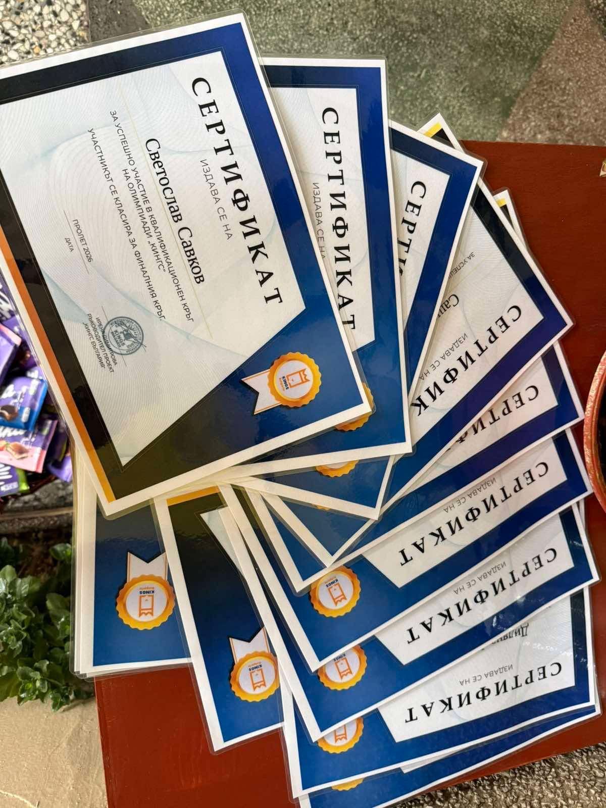 На всички участници бяха връчени сертификати. Поздравяваме учениците за постигнатите резултати и им пожелаваме още много бъдещи успехи!