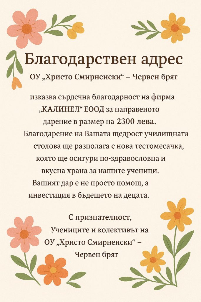 „Учебната година е пътуване, пълно с открития и предизвикателства. Всеки ден носи нови знания, смелост и възможности, а заедно превръщаме ученето в радост и вдъхновение.“